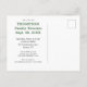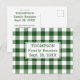 Invite a familiares a una reunión familiar con tarjetas postales que presentan un clásico cuadriculado de búfalo verde oscuro y blanco con hasta 3 líneas de texto en un rectángulo blanco en el centro en la parte delantera. La fecha, hora, ubicación e información de contacto están en la parte posterior. Perfecto para una fiesta anual de vacaciones, picnic o una nueva tradición. Personalízalo con tu nombre y detalles de la fiesta en la barra lateral.