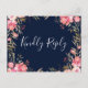 Postal De Invitación Romántico Rubor Flor de Bodas RSVP | Azul Marino