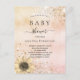 Una ducha moderna, elegante y para bebés. Un fondo de color oro rosa y rosa fino, de aspecto metálico, decorado con un polvo falso de oro y purpurina plateado y un girasol rústico. Personalice y agregue un nombre y detalles del fiesta. Letras de color negro. Atrás: oro rosa, fondo rosa rubor. Diseño postal. Sugerencia: Si no desea que se vea como una postal, haga clic en personalizar, vaya a la parte posterior y quite el separador y el sello postal.