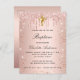 Postal De Invitación Rosa purpurina de oro gotea bautismo chica