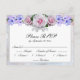 Tarjeta de respuesta de boda de estilo tradicional con fondo de bokeh plateado y acentuada con un arreglo floral de rosa rosa. Tiene un ambiente maravillosamente sutil y vintage, perfecto para la novia que busca un look victoriano actualizado.