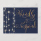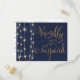 Agregue este diseño inspirado en madera rústica y luces de cuerda a su papelería de boda. Tipografía cursiva elegante y romántica en dorado falso sobre fondo azul marino. Personalice con facilidad.