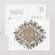 Esta tarjeta postal de RSVP de boda cuenta con flores de acuarela, bayas y piñas en colores neutros de otoño con fondo de impresión en papel kraft. Será perfecto para boda de otoño y invierno.