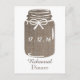 Estas invitaciones con postales son perfectas para cualquier novia y futuro novio que planee una cena de ensayo de bodas en el campo. El diseño presenta un frasco de albañil con una bonita proa. El diseño rústico puede ser personalizado para adaptarse a su evento especial y será la invitación perfecta para cualquier fiesta temático del país, incluyendo duchas de novias, compromisos, bodas, cumpleaños y mucho, mucho más.