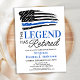 ¡La Leyenda Se Ha Retirado! Ligeras invitaciones a la jubilación de la policía de la Línea Azul. Celebra años de servicio dedicado, e invita a amigos y familiares a tu fiesta de retiro de la policía con esta Invitación de retiro de la policía de bandera azul delgada. Diseño de la bandera estadounidense en los colores de la bandera de la policía, diseño moderno blanco negro y azul. Vea nuestra colección para encontrar regalos de retiro de oficiales de policía, favores del partido de retiro de la policía y suministros. DERECHOS RESERVADOS © 2021 Judy Burrows, Black Dog Art - Todos los derechos reservados. Leyenda Personalizada De Jubilación Policial Ha Retirado Tarjeta Postal De Invitación
