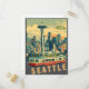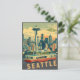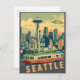 Un cautivador ilustracion de postal de estilo vintage que evoca el encanto y el carácter de Seattle, Washington.