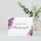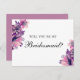 Postal De Invitación Serás mi dama de honor. Boda morado y rosa
