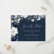 Postal De Invitación Simple floral azul de la marina salva la fecha