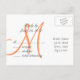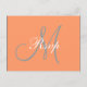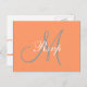 Elegante, simple, elegante Boda RSVP Postcard con un diseño de tipo de letra de guión monograma en colores naranja, blanco y gris. Personalizar con su monograma e información personal. Tienda de contacto Elke Clarke© para diferentes colores de fondo. Tenga en cuenta: el tamaño de estas tarjetas para asegurarse de que encajan en sus sobres de invitación.