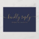 Una sencilla y elegante tarjeta RSVP con tipografía moderna de oro en un fondo azul marino. El reverso cuenta con tus detalles y una divertida petición de canciones de invitados. Diseñado por Thisisnotme©