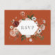 Elegante follaje de acuarela colorido de otoño y marco geométrico floral, tarjeta postal de respuesta de boda con solicitud de canción.