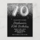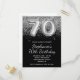 Postal De Invitación Sparkly Silver Purpurina Balón negro 70 cumpleaños