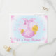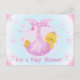 ¡Las invitaciones a la ducha Star Baby son tan bonitos! Presentan a un bebé en una manta rosa con muchas estrellas en un fondo azul con un texto rosado que dice "¡Es un Baby Shower!".