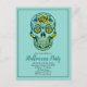 Postal De Invitación Sugar Skull Aqua Blue Halloween