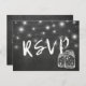 Plantillas de Tarjetas de Respuesta de Boda - Elegantes Tarros de Mason y Luces de Cuerda Vintage con Fondo de Pizarra Negra Grunge.