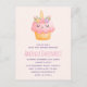 Ducha de bebé u otra invitación para un evento con un dibujo acuático de un quequito con hielo rosa, un cuerno de unicornio y rosas coloridos.