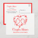 Your shower details are printed in pretty red script with clean black text, so everything is easy to read and looks polished without being fancy or overdone. It has that red and white look that feels perfect for an outdoor summer party, a romantic spring get‑together, or, honestly, any celebration where you want things to feel warm, relaxed, and full of love. If you’re a nature lover, or you just adore sweet little details that make people go “aww,” this love heart moment is going to feel so you. It’s soft, it’s charming, and it sets the tone for a fun couples shower that celebrates both of you in the cutest way. Just add your names, date, time, and location — and suddenly it becomes this heartfelt little keepsake your guests get to open and smile at. It’s simple, joyful, and totally your style.