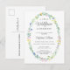 Invite a la familia y amigos a la ducha de bebé de su bebé con esta invitación de postal de la flor silvestre de bonito. Está decorado con un marco ovalado de flores dibujadas a mano, vegetación y tipografía de diseño. Personalizable fácil. Agregue el mensaje al reverso o elimine el texto. Utilice la Herramienta de diseño para cambiar el tamaño, estilo o color del texto. A medida que creamos nuestra obra de arte no encontrarás esta imagen exacta de otros diseñadores. Dibujo manual original © Michele Davies.
