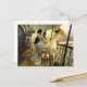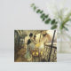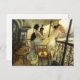 Postal de James Tissot Portsmouth. Óleo sobre lienzo de 1877. El pintor francés James Tissot pasó gran parte de su vida en Inglaterra pintando hermosas obras examinando la cultura victoriana. Portsmouth (Galería de H.M.S. Calcuta) es una obra que representa a dos jóvenes y a un joven marinero sentados en el barandilla de un barco en el puerto. Las dos jóvenes llevan elegantes vestidos victorianos junto al mar, con corsés bien encalados y bustres completos. Una mujer lleva un gran arco amarillo mientras que la otra lleva toros de color azul, ambas llevan gorras elegantes y una sostiene un ventilador muy grande. Varias tumbonas se sientan vacías detrás de ellas mientras se inclinan sobre el pasamanos, y el marinero sostiene la cabeza en la mano. Un bello regalo para los aficionados a Tissot, el arte victoriano, las pinturas de barcas antiguas y el realismo del siglo XIX.