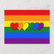 Tarjeta postal con LGBT (lesbianas, gays, bisexuales y transgénero) rainbow stripes bandera de orgullo con diseño de corazones
