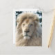 El Rey de la Selva. Retrato de un bello y majestuoso león blanco de color caramelo y crema sobre un fondo de árboles. Postcard con un diseño de estilo de pintura al óleo de personalizable para que usted pueda personalizar con su propio texto, imágenes e ideas. Creado con fotografías originales y efectos digitales de Jess Perry.