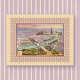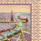 Esta elegante e inusual imagen de la tarjeta comercial victoriana, inundada con un hermoso color de lavanda, describe el diseño de la Expo 1900 en París, Francia. Una colección de barcos recorre floentemente el Sena azul acuamarina. Un cielo colorido y de tono rosa complementa los suaves colores de lavanda del ilustracion central.