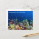 Una postal que ofrece escuelas abundantes de pescados tropicales y una variedad asombrosa de corales duros y suaves coloridos. La foto fue tomada en la gran barrera de coral de Australia.