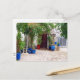 Postal con la imagen de un patio pintoresco de una casa en la isla sarónica de Hydra, Grecia acentuada por una cerámica azul brillante. Consulte el pegatina correspondiente. Ver toda la colección de tarjetas de felicitación de Grecia en la sección CARDS, POSTCARDS & PEGATINAS.
