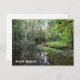 Postal que ofrece una foto de una canoa en el agua en la selva tropical del Amazonas en Suramérica.