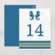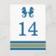 Elegante y clásico Nautical Seahorse Boda Número de tabla postal con un par de caballitos de mar simples y un conjunto de rayas en azul marino oscuro y oro. Esta tarjeta de mesa con temática náutica se puede personalizar fácilmente con los detalles de tu boda. Para obtener más opciones de personalización, haga clic en el botón Personalizar.