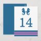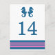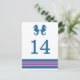 Elegante y clásico Nautical Seahorse Boda Número de tabla postal con un par de caballitos de mar simples y un conjunto de rayas en azul marino oscuro y rosa. Esta tarjeta de mesa con temática náutica se puede personalizar fácilmente con los detalles de tu boda. Para obtener más opciones de personalización, haga clic en el botón Personalizar.