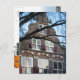 Postal fotográfica de la vieja casa holandesa. Casa holandesa histórica del siglo XVI con cerraduras de ventanas y en el primer plano un árbol.