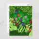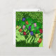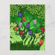 Una postal con las flores acampanadas coloridas en un fondo herboso frondoso verde.