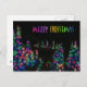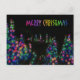 Una acuarela digital y luminosa de árboles navideños decorados con luces brillantes por la noche.