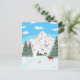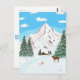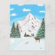 Una carta con una maravillosa escena de montañas nevadas, verduras cubiertas de nieve y un ciervo macho mirando hacia abajo a una cabaña rústica. Obra de arte original de W.B. La imagen, el fondo y el texto se pueden personalizar.