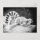 Dos lemures se asoman en una roca, la cara de uno perfectamente enmarcado por la cola a rayas de su compañero.