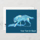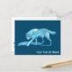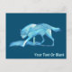 Un lobo azul estilizado (Canis lupus) proyecta una sombra a medida que pasa por un terreno nevado. Añade tu propio texto.