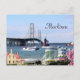 Postal Mackinaw con puente Mackinac, Grand Hotel, faro Round Island