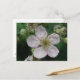 Esta postal floral de bonito muestra una fotografía de una flor blanca de mora negra. La foto fue tomada usando macrofotografía para un resultado detallado. Se puede ver el fino detalle, como el matiz rosa de los pétalos blancos.