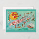Un colorido mapa de postal de Long Island, Nueva York, reutilizado en una nueva postal.