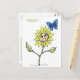 Un lindo dibujo y obra de arte de una sonrisa de girasol y mariposa, impresa en una postal.