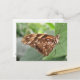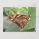 Esta impresionante postal muestra una fotografía de una hermosa mariposa tropical. Tiene alas marrones bonitos cubiertas de manchas naranjas, blancas y tostadas. La fotografía fue tomada usando macrofotografía para obtener un resultado asombrosamente detallado.