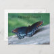 Esta postal contiene un púrpura de manchas rojas (arma de Limenitis astyanax), mariposa. Una hermosa mariposa con alas azules iridiscentes leves manchas naranjas sobre un poste de madera.