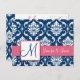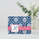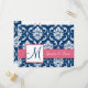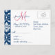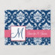 Personalizado RSVP Navy Damask Wedding Diseño de la distribución de la tarjeta postal de Elke Clarke©. Gráficos con licencia. La tarjeta postal de matrimonio Damask RSVP de personalizable se adapta a 5 x 7 invitaciones.