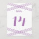 .Postal con número de mesa Boda de decoración moderna sencilla y elegante con diseño Art Deco de rayas cruzadas en violeta. Esta tarjeta de mesa clásica se puede personalizar fácilmente con los detalles de su boda. Para obtener más opciones de personalización, haga clic en el botón Personalizar.