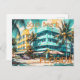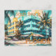 Una postal de Florida radiante, que capta la esencia de South Beach de Miami, con sus edificios retro Art Déco soleados y palmeras balanceadas. Esta postal de Florida es parte de una serie de postales creadas en un estilo artístico post-impresionismo y está inspirada en diferentes lugares alrededor del mundo.