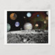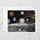 Nuestra postal de fuera de este mundo muestra un montaje de imágenes del sistema solar tomadas por la nave espacial Voyager. Los planetas y cuatro de las lunas de Júpiter se colocan contra una nebulosa Rosette de color falso con la luna de la Tierra en primer plano. La postal sería perfecta para los amantes del espacio y los fanáticos de la exploración espacial. Crédito de la imagen: NASA