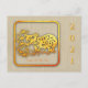 Papel chino dorado cortado de un Ox en un cuadrado con el mismo diseño en negro para crear sombra de gota. Diseño de postales de vacaciones horizontales con un bistre papel artesanal tradicional - hecho en Vietnam - (imagen impresa) como fondo (frontal y dentro de la tarjeta). Tarjetas de felicitación, invitación, artículos de artesanía, suministros para fiestas y más... Perfecto para el Año Nuevo Chino o Vietnamita del x 2021.
