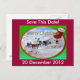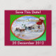 Postal de navidades. Esta postal Navidad está decorada con una pintura acuarela de una cucaracha que pasa por un granero cubierto de nieve.