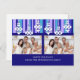 Felices vacaciones navidades personalizado doble foto postales en azul, púrpura, blanco y verde azulado modernos navidades copos de nieve, decoración y rayas patrón, elegante y simple. Desee a su familia y amigos lo mejor de esta temporada de vacaciones con esta divertida postal.